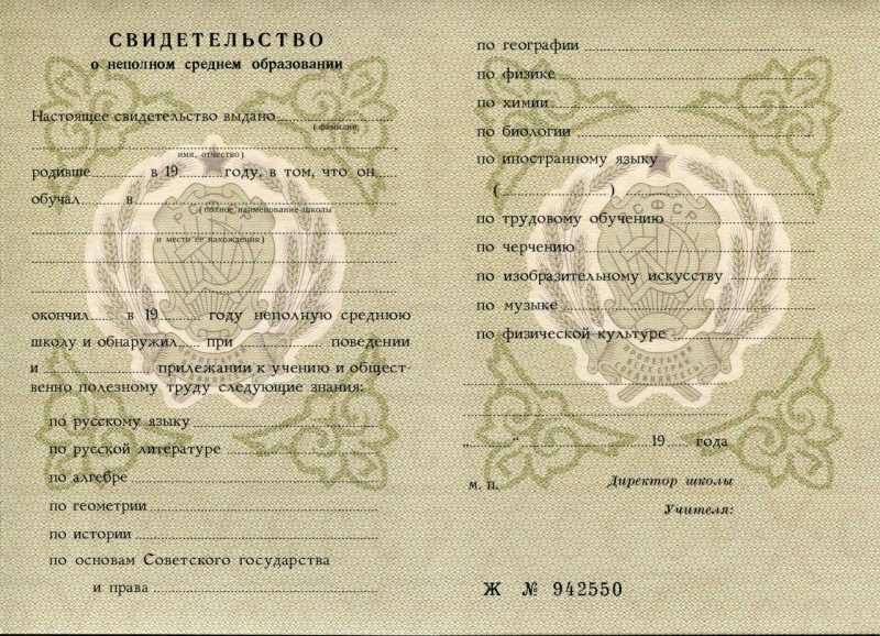 Аттестат за 9 классов. Цена: