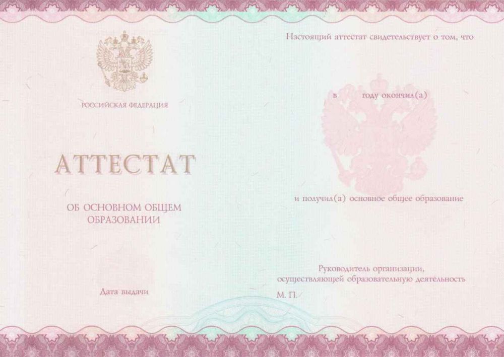 • Документ: Аттестат 9 классов образца